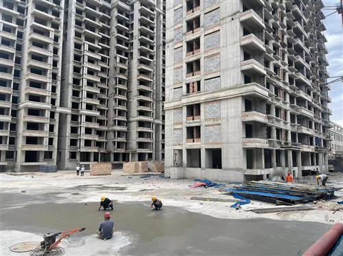 龍澤灣建設(shè)項(xiàng)目車(chē)庫(kù)頂板找坡工程進(jìn)行中。