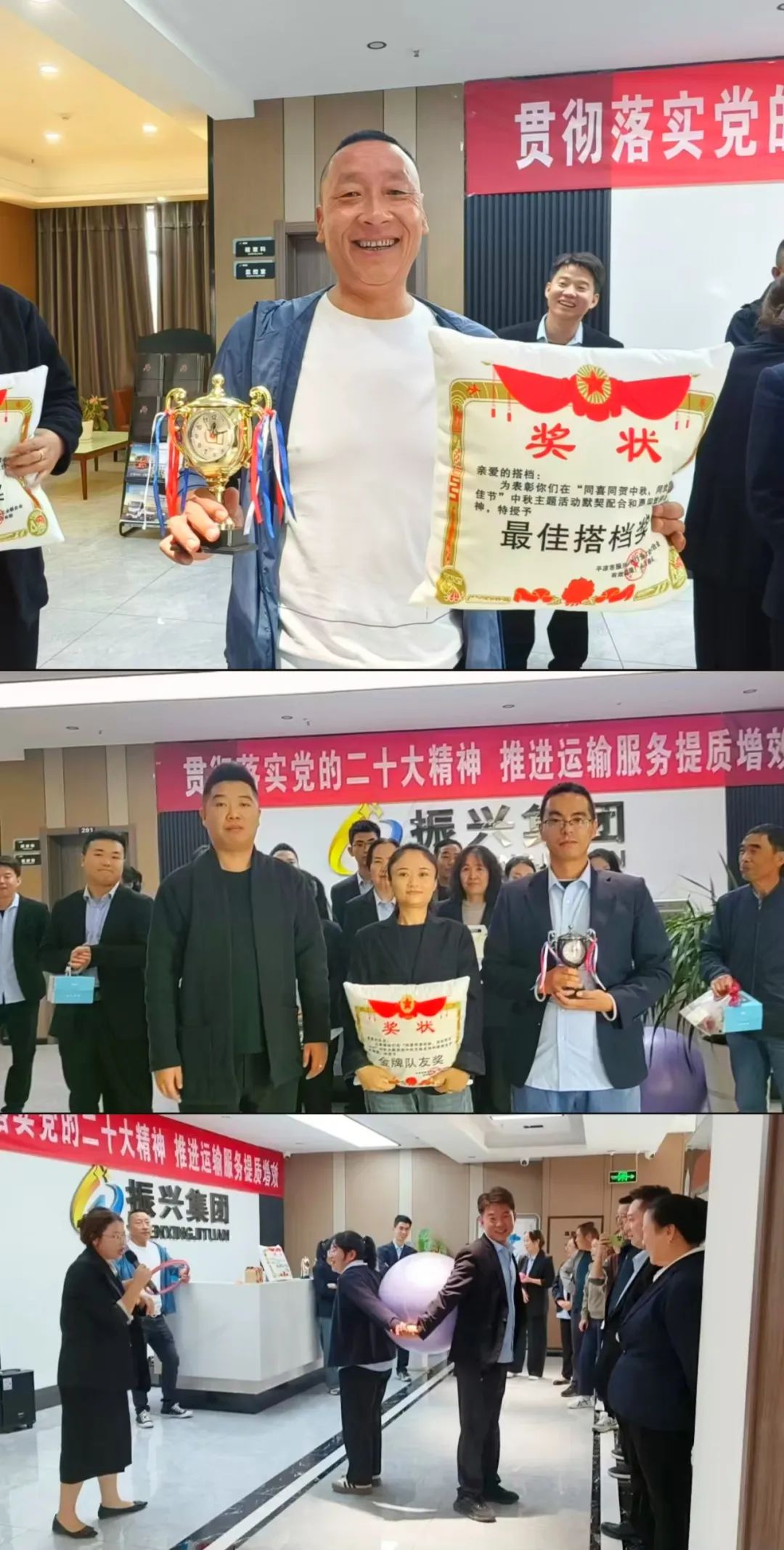 參賽人員隨機男女搭檔,兩人一組背靠背進行定距離運送“月球”回歸,默契配合的搭檔們分別獲得了“最佳搭檔獎”“金牌隊友獎”獎狀和“榮譽獎杯”。
