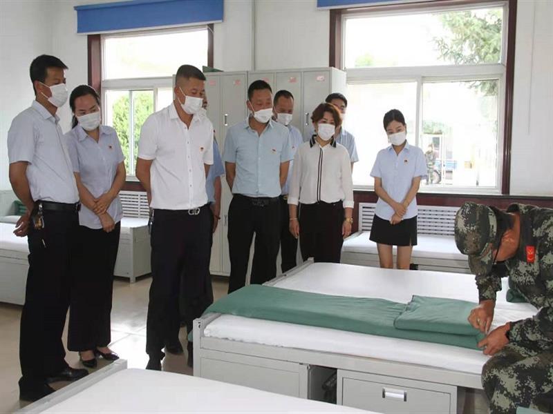進(jìn)入軍營,在解說員的帶領(lǐng)下,首先,全體黨員參觀了軍營文化墻、綠色蔬菜基地、訓(xùn)練項(xiàng)目區(qū)的坑、樁、杠、欄,仿佛眼前每一處都曾滴下他們辛勤的汗水。其次,我們?nèi)w黨員列隊(duì),觀看了他們的軍事格斗技能展演,指導(dǎo)員一聲令下,擒拿格斗、制敵方式所有動(dòng)作嫻熟自如,他們頑強(qiáng)拼搏的精神讓我們每一個(gè)在場的人都為之動(dòng)容。堅(jiān)信只要他們在,人民就是安全的,他們是黨和人民的驕傲。接著,解說員帶領(lǐng)大家來到生活區(qū),參觀了他們的內(nèi)務(wù)整理,所有物品擺放一致,整齊劃一,床上的被子,就是所謂的“豆腐塊”,堪稱一道亮麗的風(fēng)景線。隨后,又參觀了部隊(duì)的榮譽(yù)室,它是這支部隊(duì)記錄榮譽(yù)、傳承軍魂的精神殿堂,學(xué)習(xí)傳統(tǒng)、塑造軍魂、牢記使命,墻上懸掛的每一副圖片、柜子上陳列的每一件物品,讓全體參觀人員感慨萬千,對(duì)他們的無私奉獻(xiàn)表示崇高的敬意。